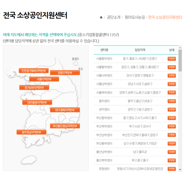 공단소개 〉 찾아오시는길 〉 전국 소상공인지원센터